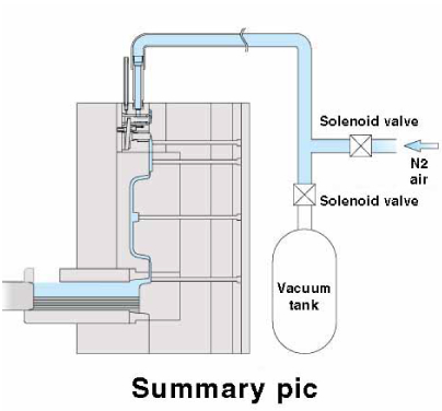 Before mold close, air was supplied through solenoid valve and this air exhausts from molten metal fill gate.